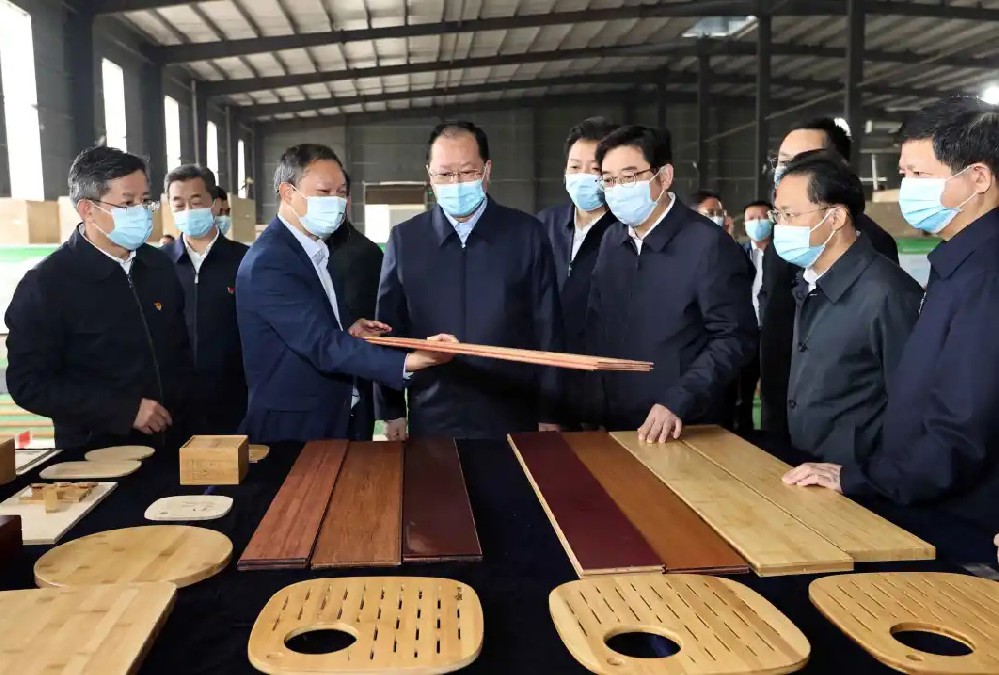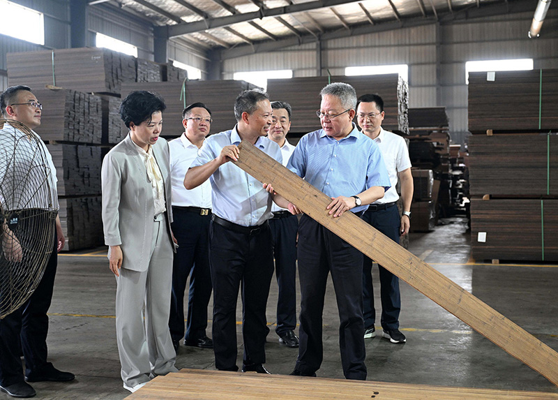 2025年6月16日,省政協(xié)副主席虢正貴來(lái)湖南桃花江竹材科技股份有限公司調(diào)研生態(tài)資源轉(zhuǎn)化與特色產(chǎn)業(yè)融合發(fā)展。公司董事長(zhǎng)、省人大代表薛志成陪同并介紹情況。虢正貴充分肯定了桃花江竹材在竹資源利用及竹特色產(chǎn)業(yè)融合發(fā)展所取得的成果,他鼓勵(lì)企業(yè)繼續(xù)發(fā)揮龍頭優(yōu)勢(shì),充分利用好桃江資源稟賦和產(chǎn)業(yè)優(yōu)勢(shì),深化產(chǎn)學(xué)研融合,提升竹產(chǎn)業(yè)附加值,為民族地區(qū)生態(tài)資源高效轉(zhuǎn)化和特色產(chǎn)業(yè)融合發(fā)展探索更多經(jīng)驗(yàn)。